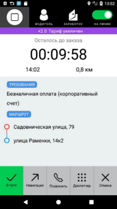 Об этом сообщит Таксометр после того, как вы укажете «На месте». Если это корпоративный заказ, на экране появится надпись «Безналичная оплата (корпоративный счёт)»: